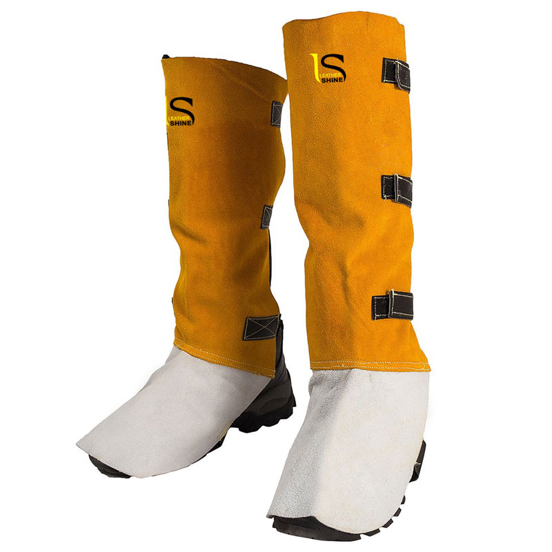Split leather.Long welders gaiter.High leg.Tan split leather.Strap & velcro fastening.